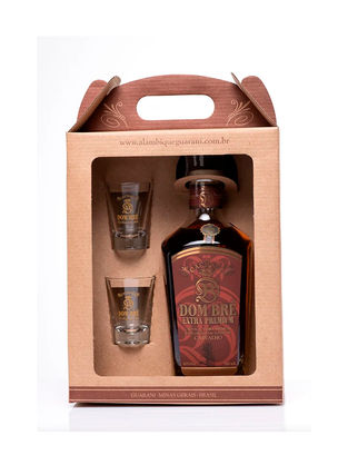 Kit composto por uma Dom Bré Carvalho Extra Premium 700ml e dois copos de vidro personalizados.
